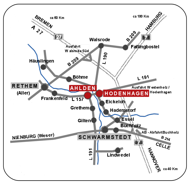 Über die A27 bis zur Abfahrt Walsrode Süd,