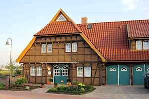 Unsere Ferienwohnung ist vielleicht nicht die größte, aber sie liegt zweifellos an einem der schönsten Plätze: gleich hinter dem Allerdeich im Giebel eines ehemaligen Pferdestalles.